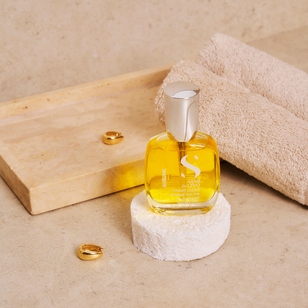 Cristal líquido profesional que controla el frizz, aporta brillo intenso y protege tu cabello todos los días.